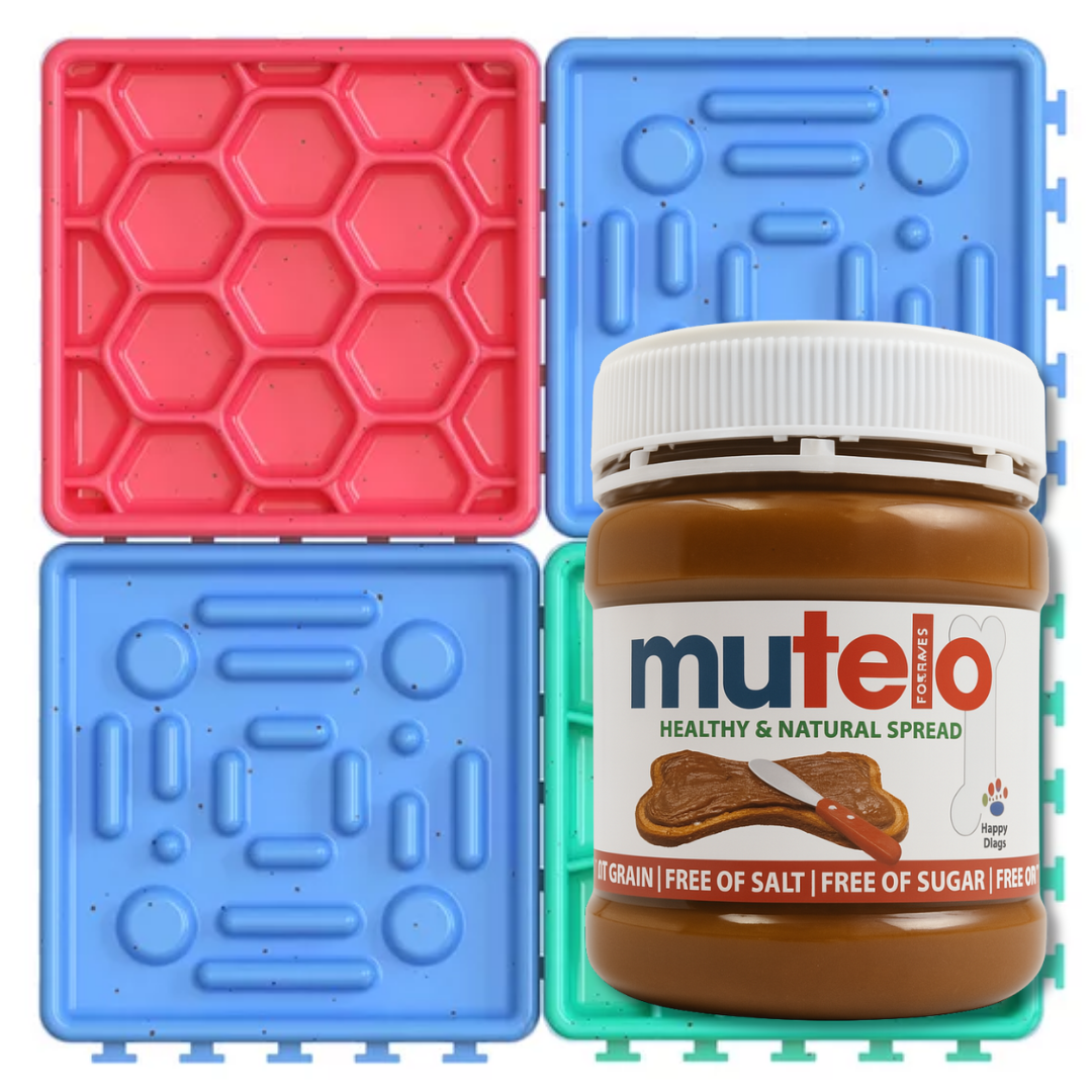 4-block Lick Mat Slow Feeder Combo + 250g Mutelo Spread for Licking Fun