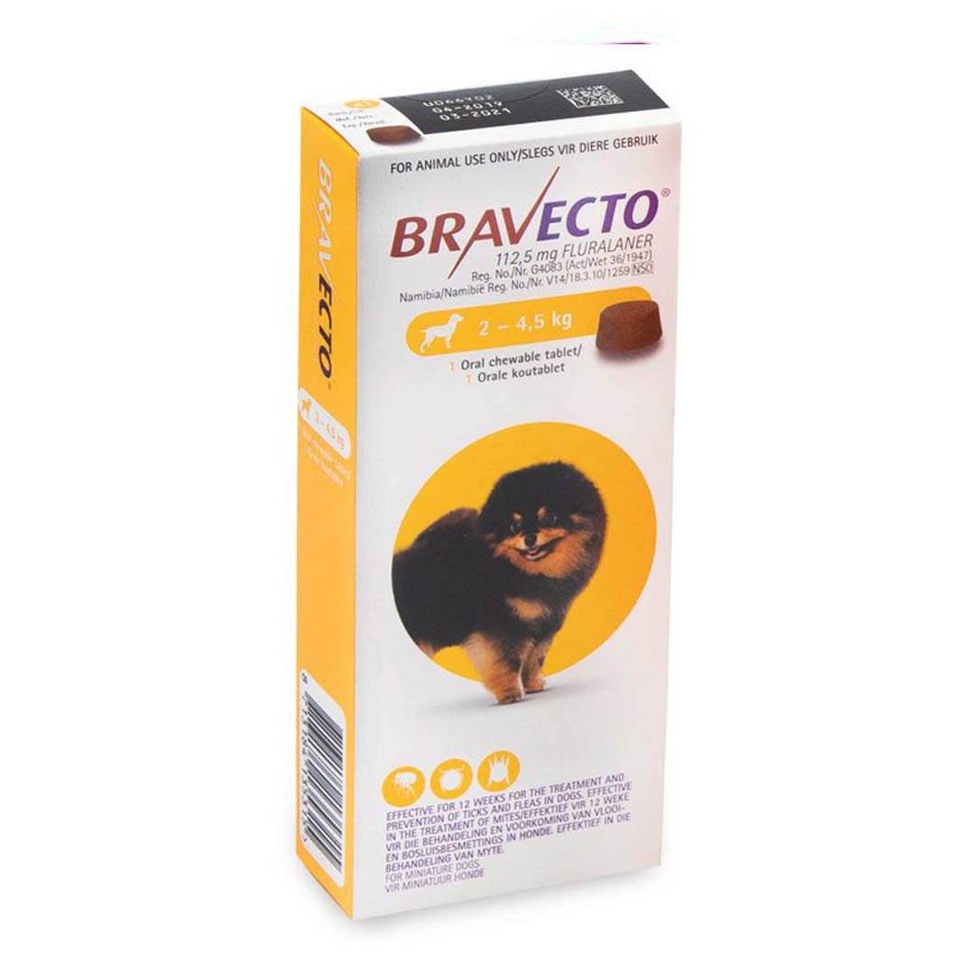 Give one Bravecto® chew orally every 12 weeks. It can be given with food or as a treat. Ensure your dog consumes the entire chew. Always use the correct chew size for your dog’s weight.