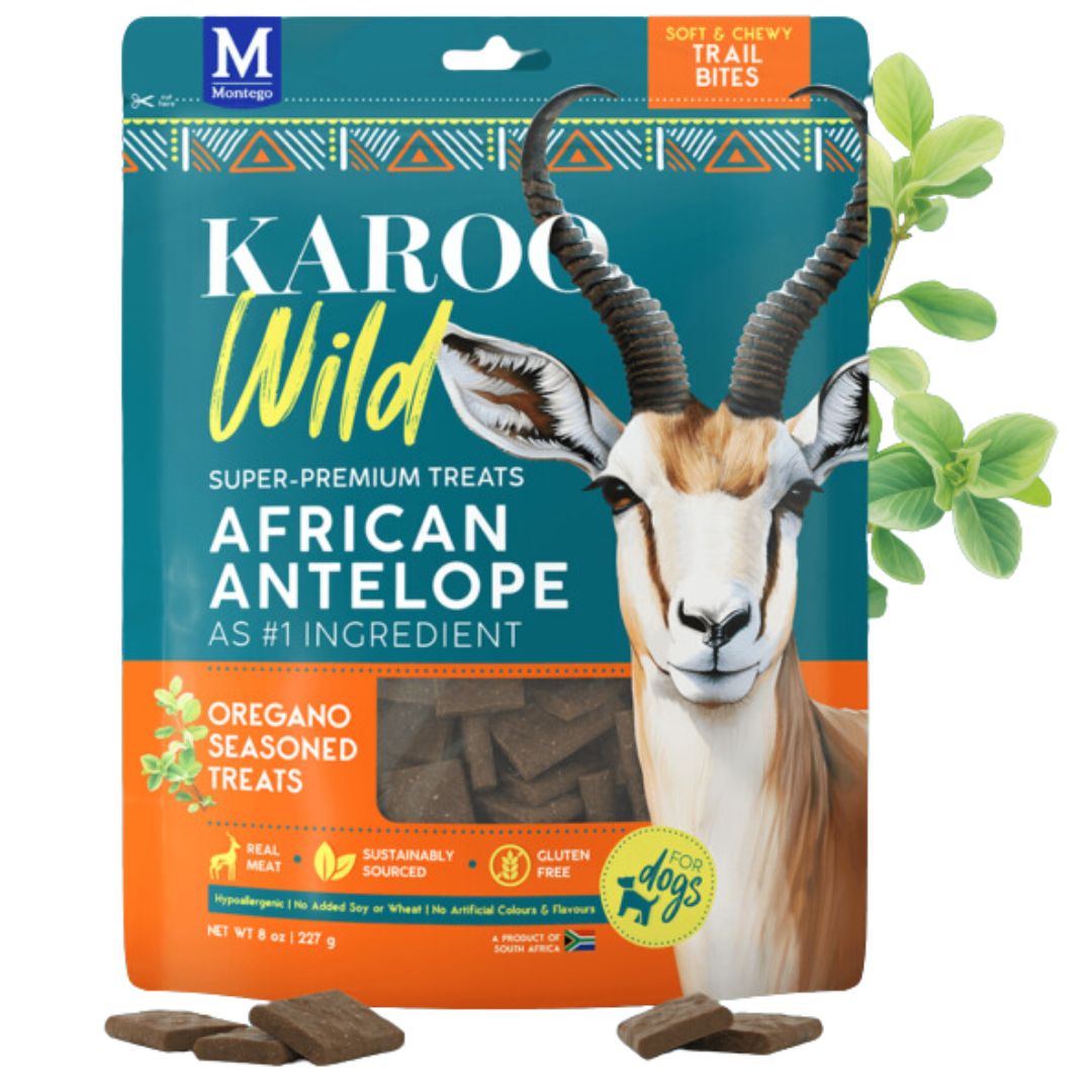 Karoo Wild Trail Bites are flavour-packed, square-shaped treats crafted for medium-breed dogs or dogs who deserve a bigger bite.