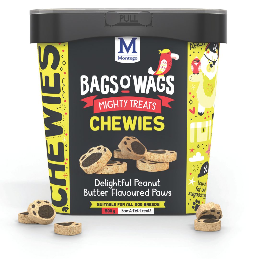 Montego Bags O' Wags Chewies - Delightful Peanut Butter Flavoured Paws (500g)