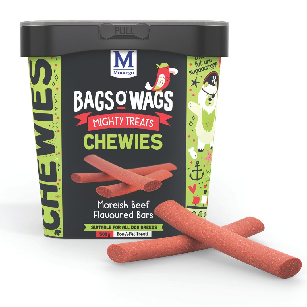 1 x Montego Bags O’ Wags Moreish Beef Flavoured Bars 500g