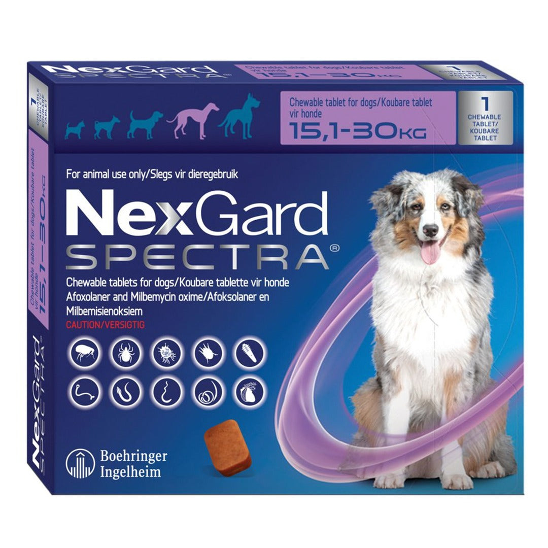 ✓ 1 x NexGard® Spectra 120mg chew (for dogs 15.1–30kg)
