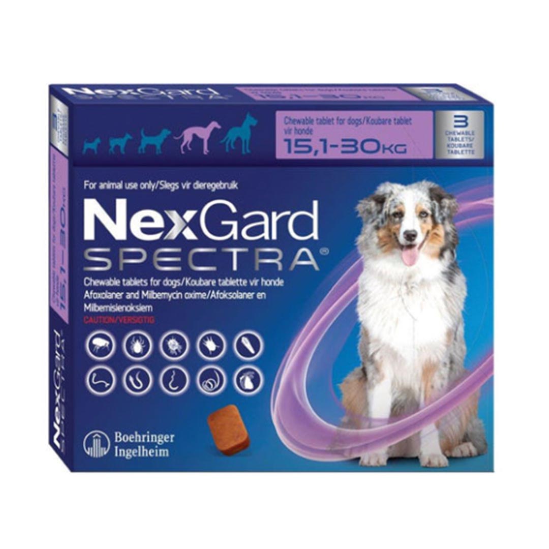 ✓ 3 x NexGard® Spectra 120mg chews (for dogs 15.1–30kg)